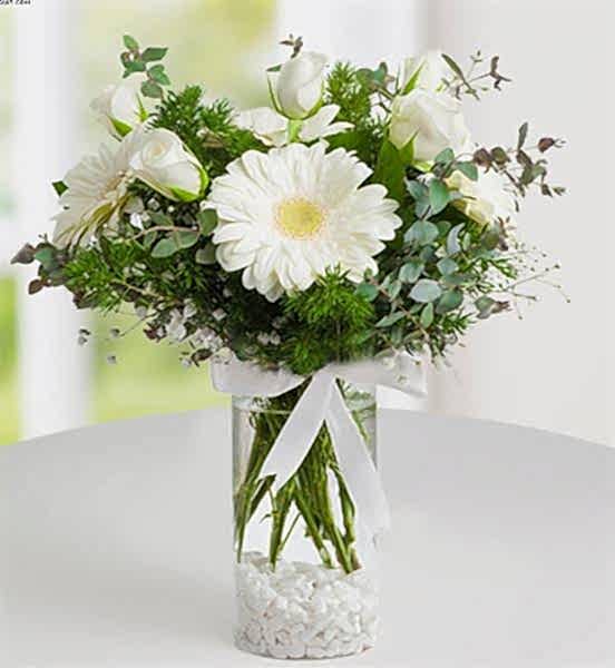 Beyaz gül gerbera aranjmanı - 1.200,00 TL