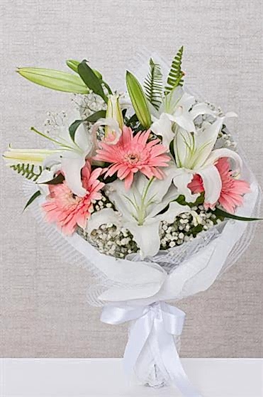 Beyaz Lilyum pembe gerbera buketi - 1.800,00 TL