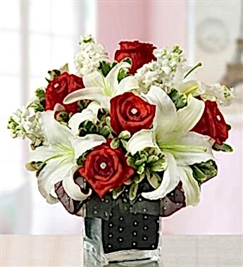 Kırmızı Gül - Beyaz lilyum ve şebboylardan oluşan aranjman - 1.800,00 TL