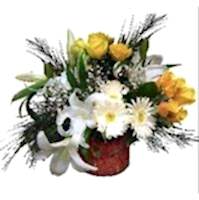 Sarı gül ve kırçiçekli aranjman