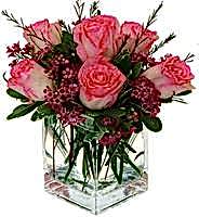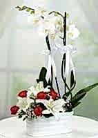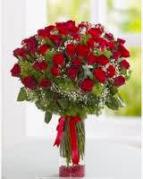 Elma Cam İçerisinde Şık Kırmızı Gül arajmanı