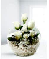 Kalp Cam içerisinde Şık Beyaz Gül Arajmanı